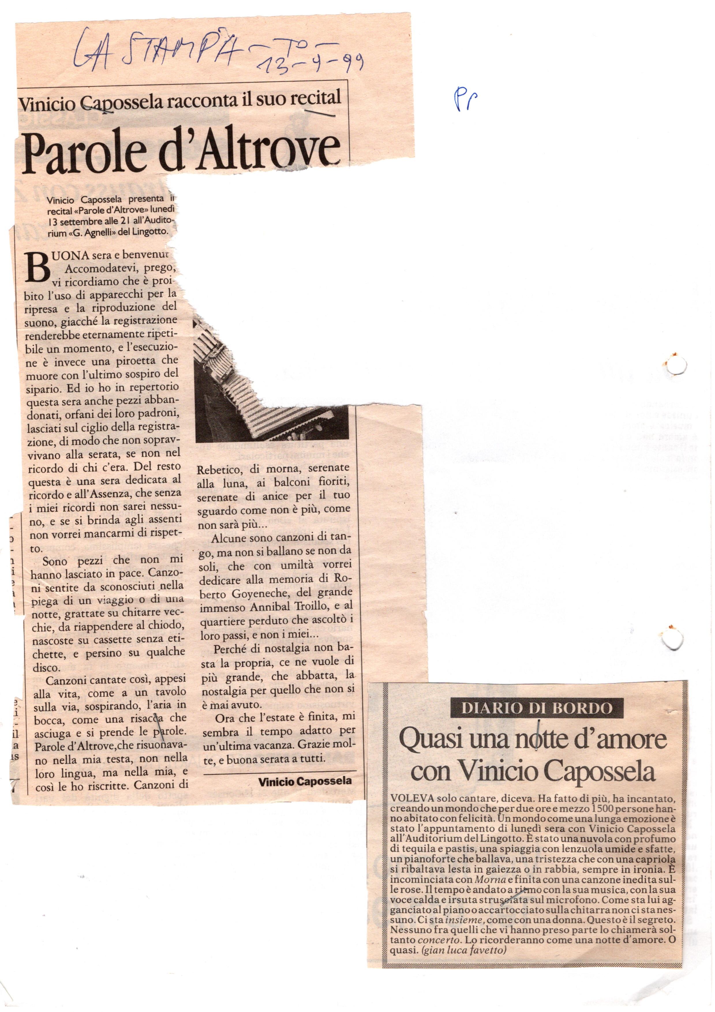 Cliccate qui per leggere alcuni interessanti stralci di interviste rilasciate da Capossela nel 1999. I file possono essere sia consultati sia scaricati in formato Word.